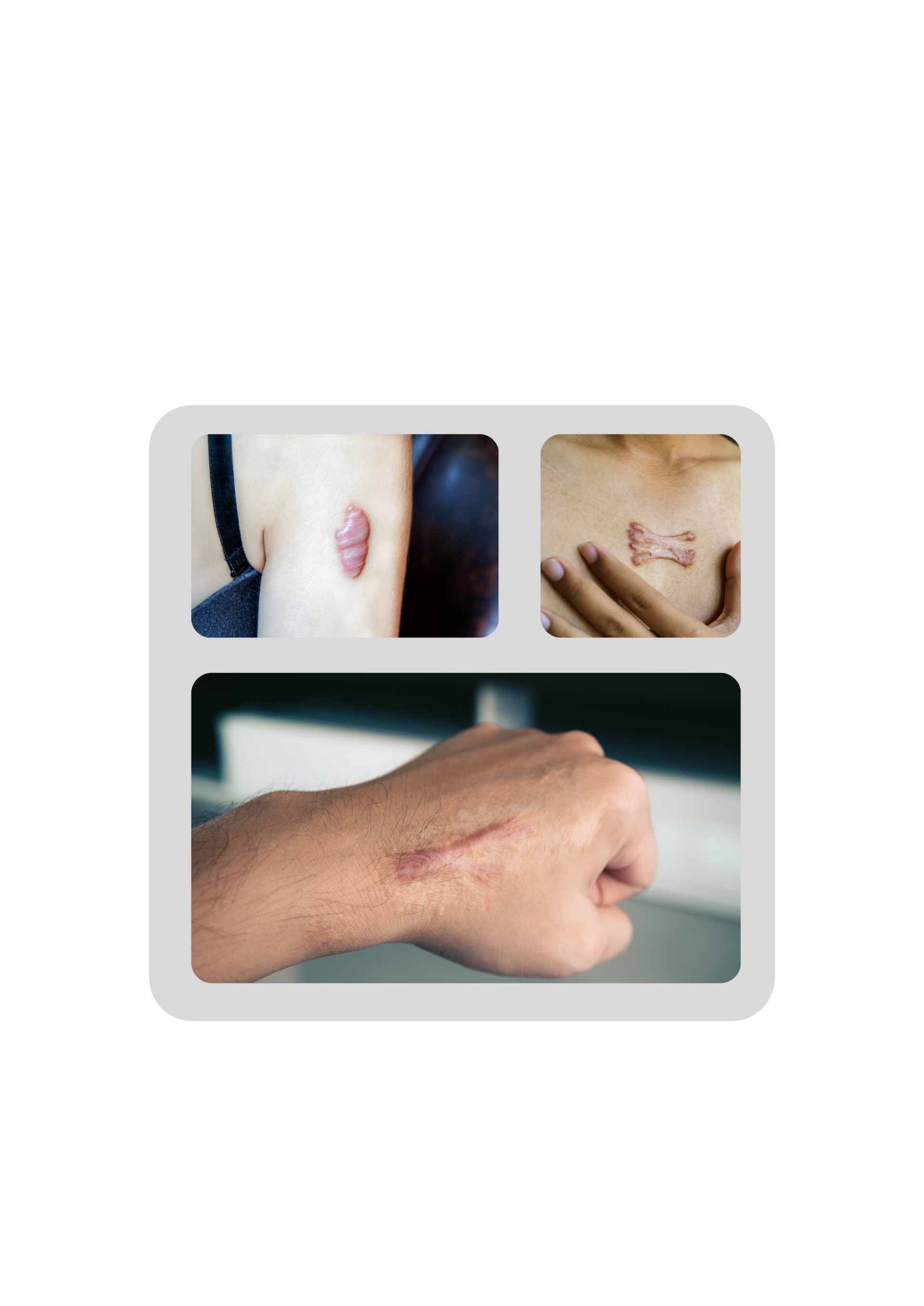 Keloids are benign fibroproliferative growths extending beyond the original wound borders, often continuing to grow for years. They occur more frequently in individuals with darker Fitzpatrick skin types (III–VI) and have a strong genetic component.
